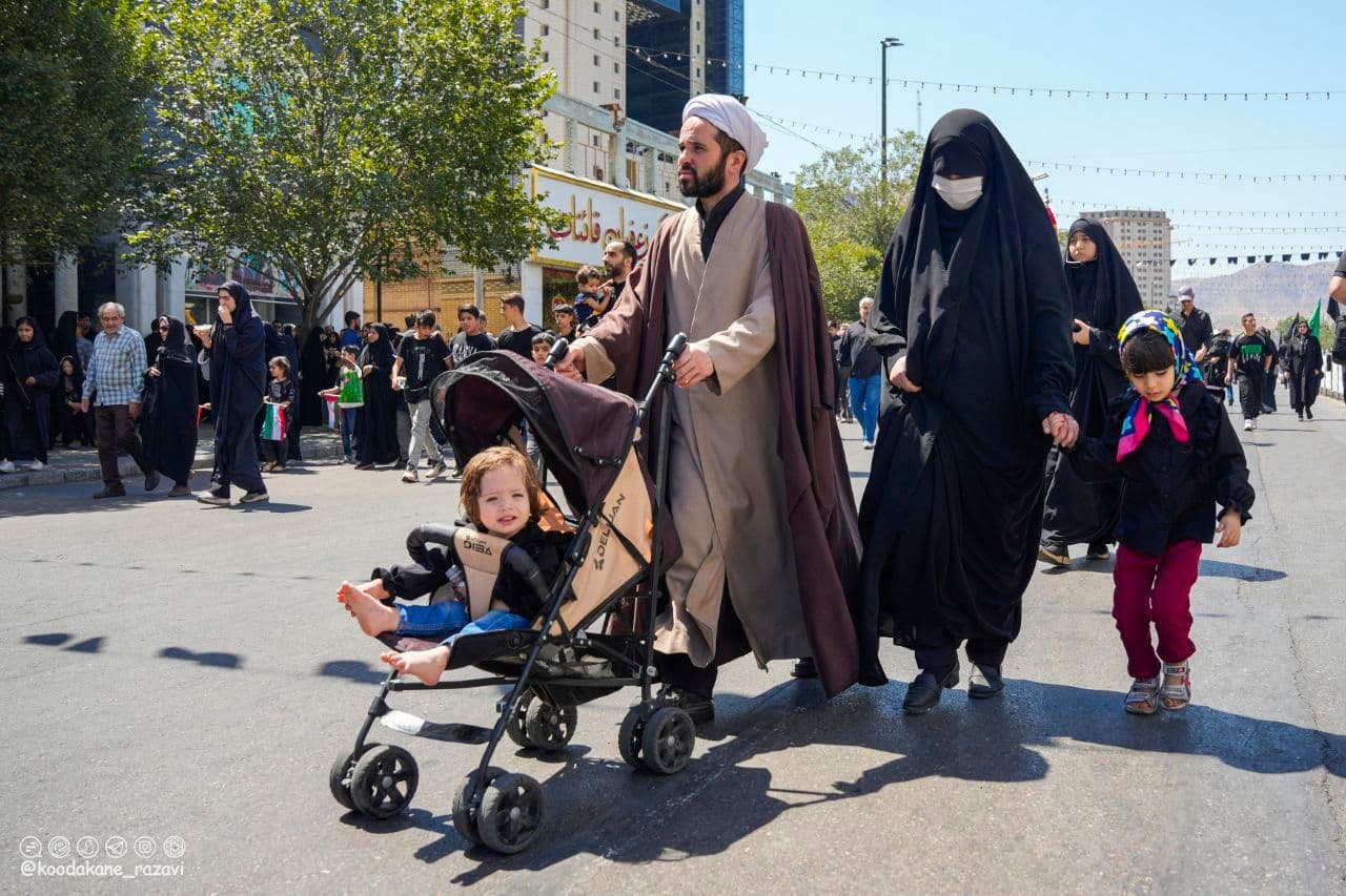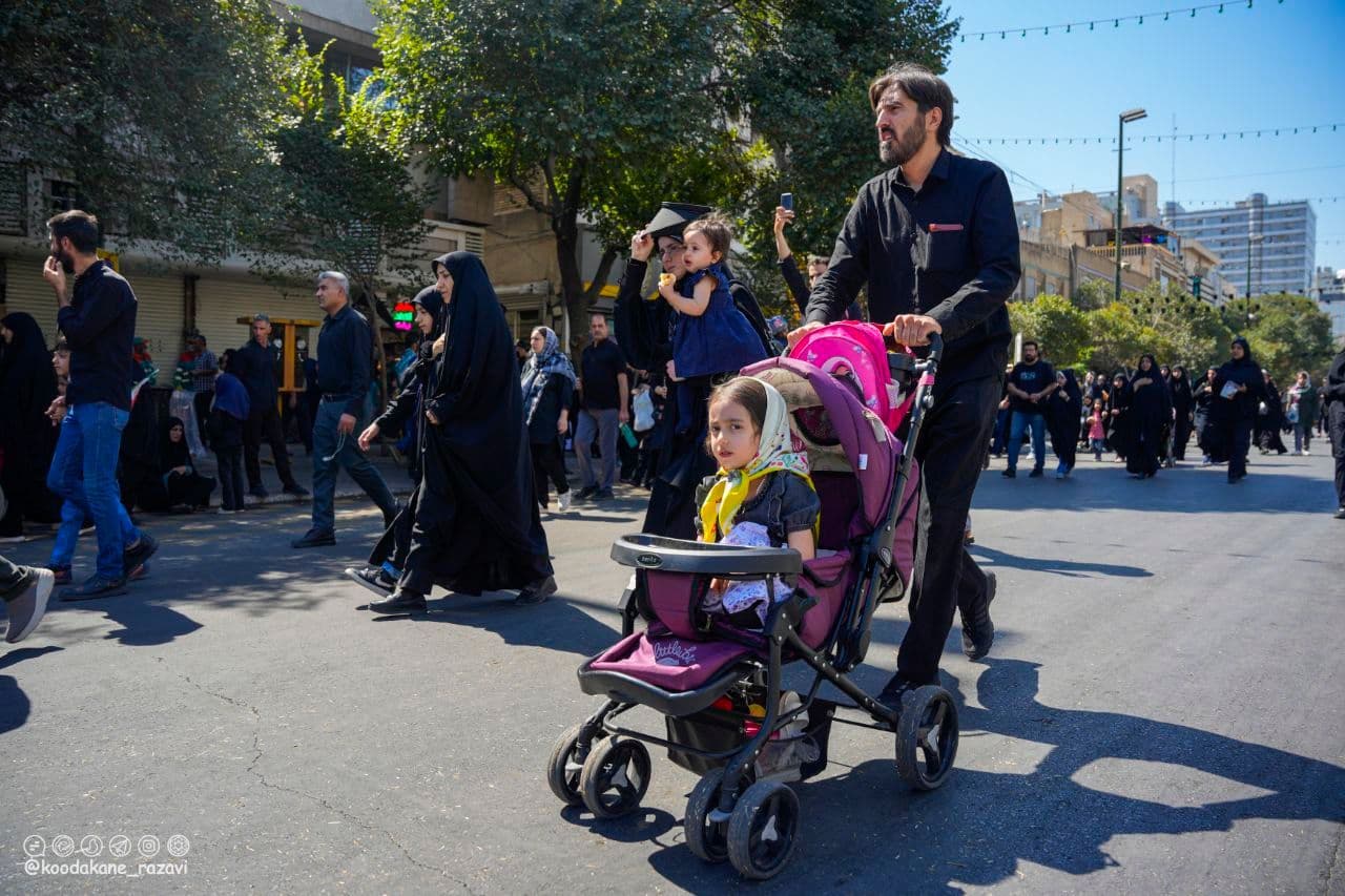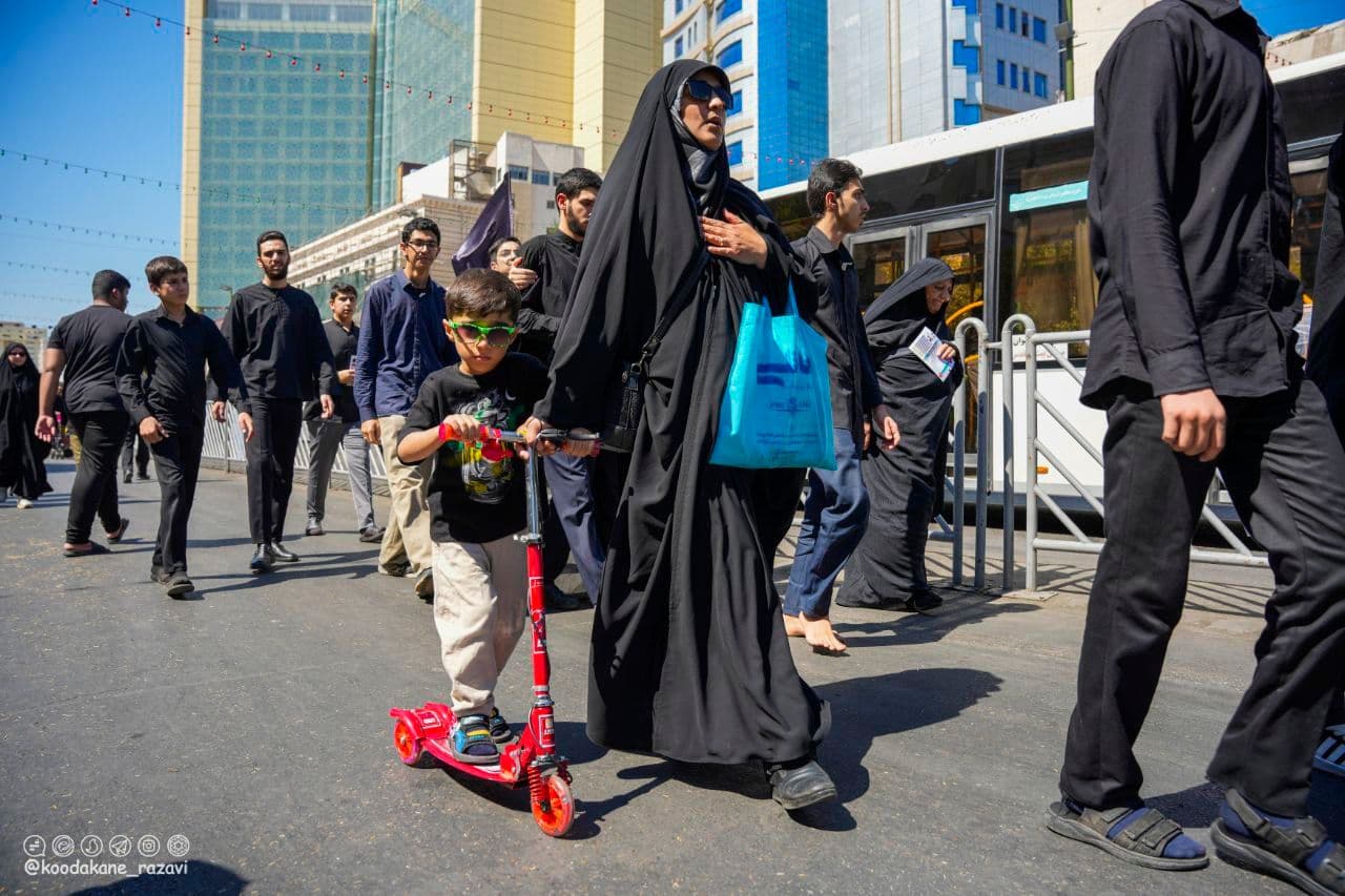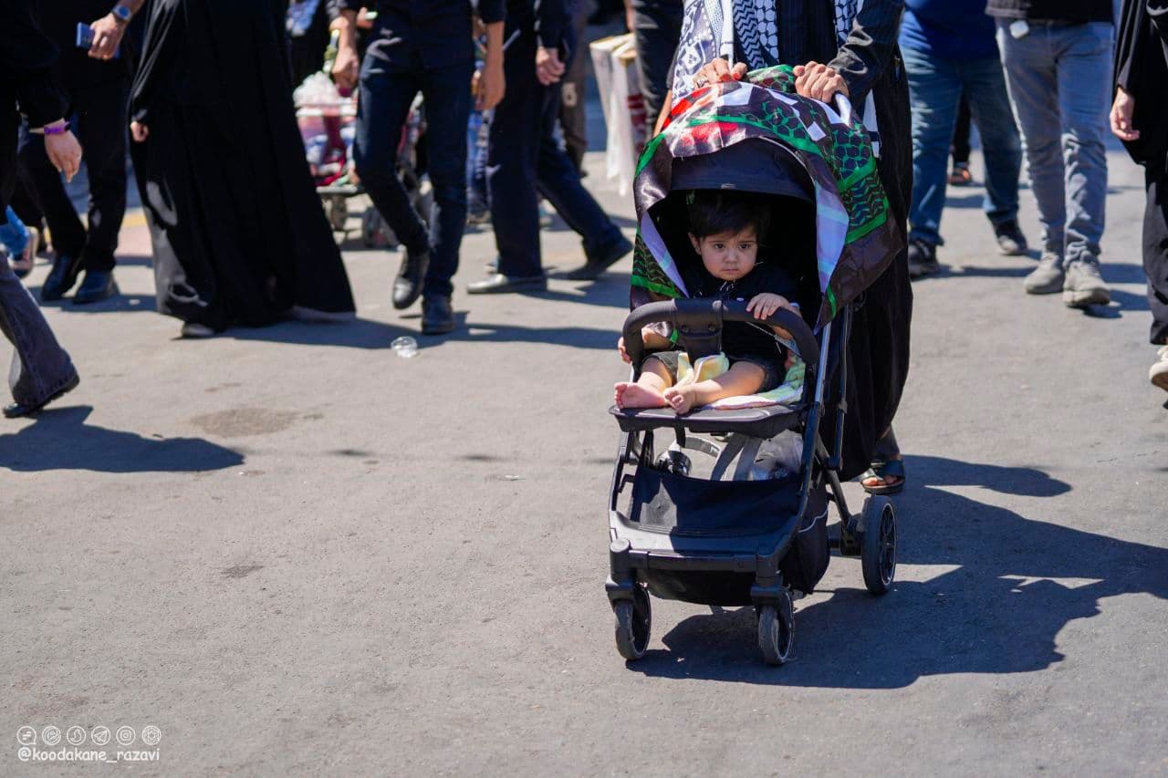 منتخب عکس از حضور کودکان به همراه والدین در راهپیمایی روز اربعین در حرم مطهر رضوی
