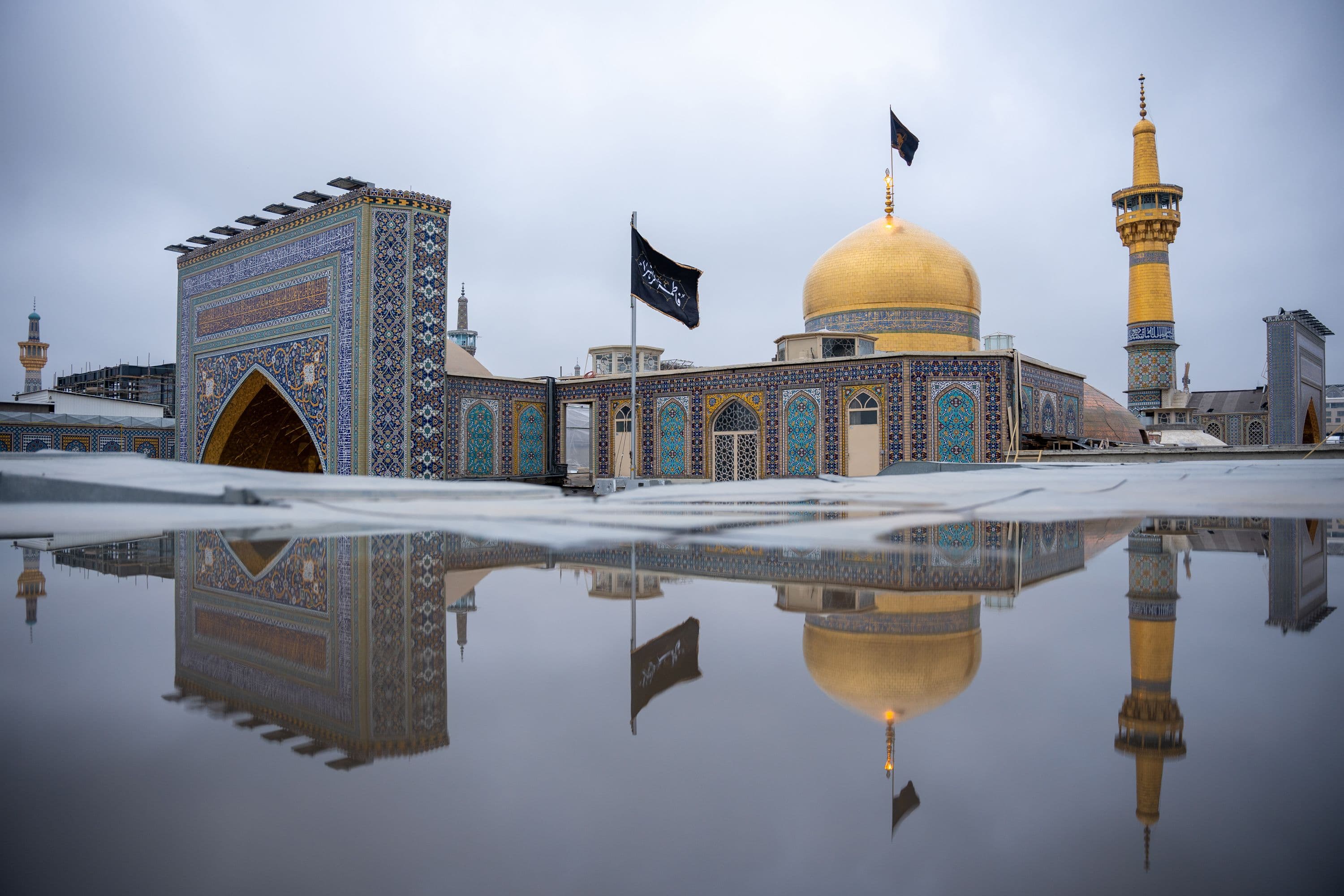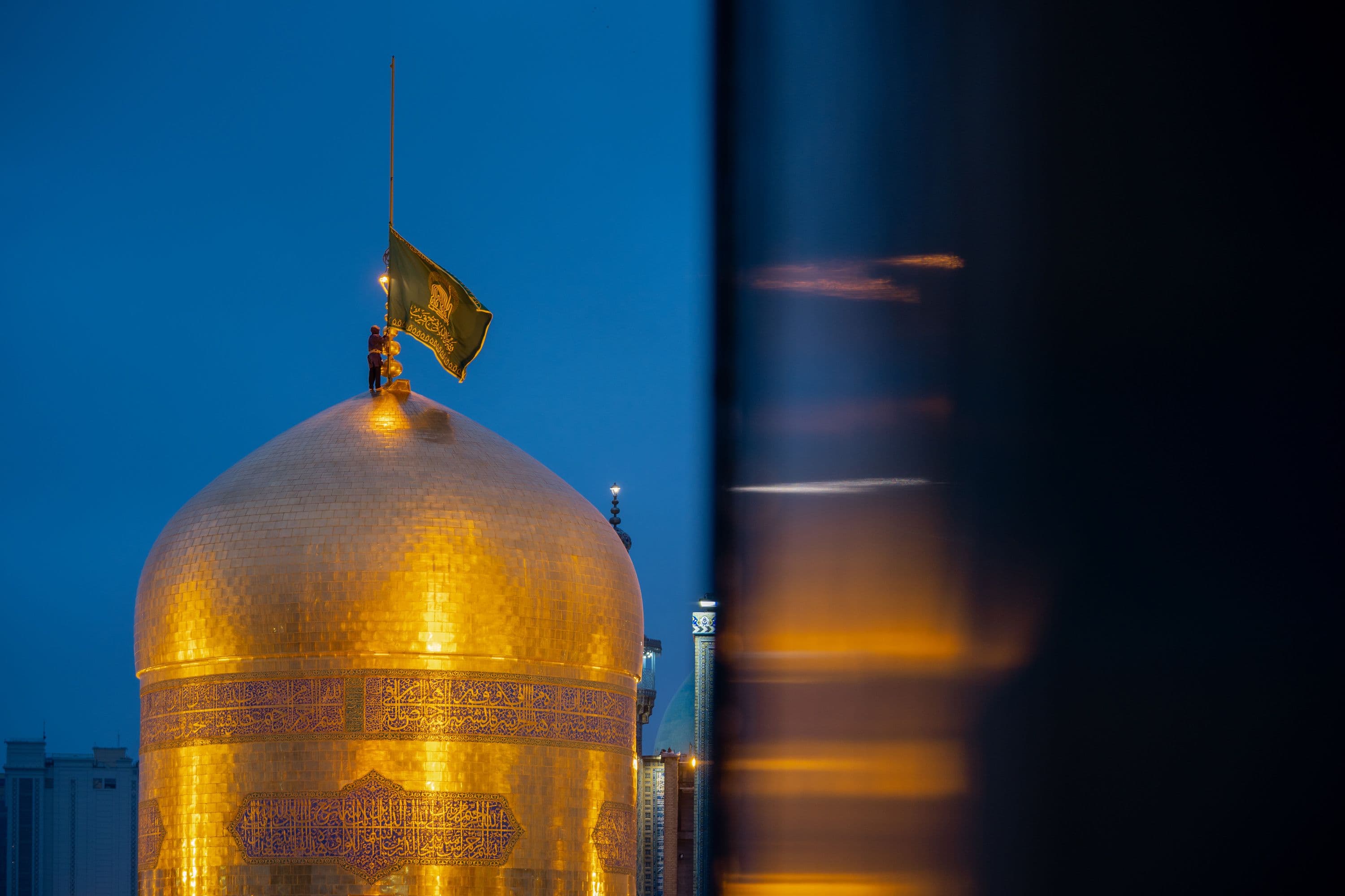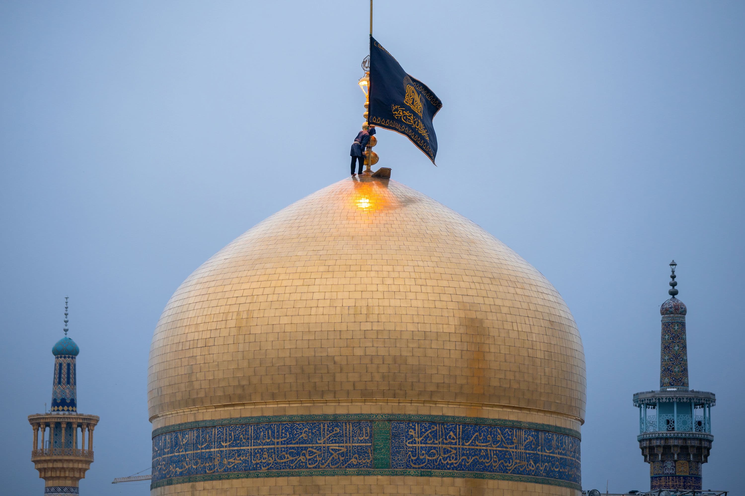 تصاویری از اهتزاز پرچم مشکی و سیاهپوشی حرم مطهر رضوی به مناسبت ایام شهادت حضرت زهرا سلام الله علیها