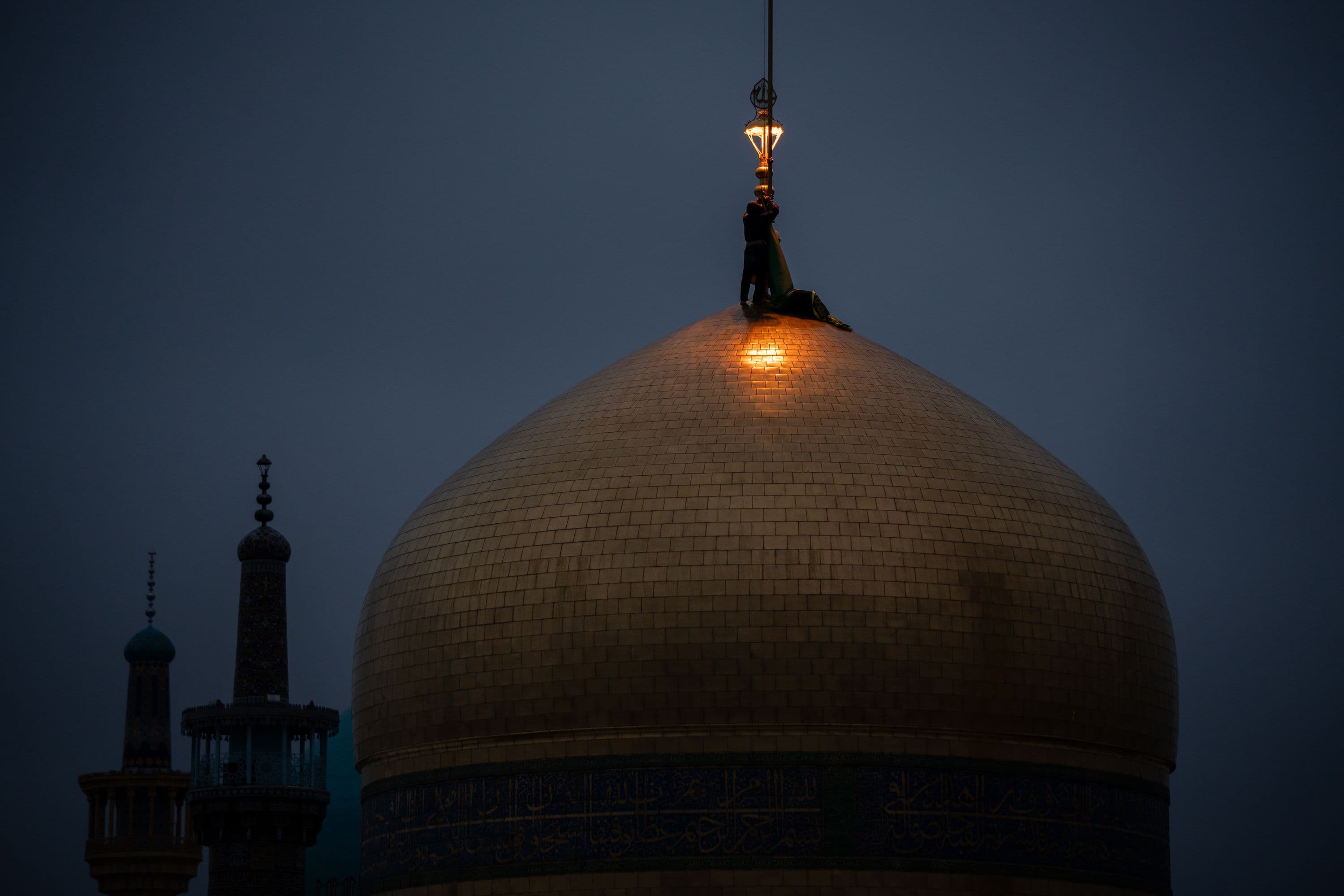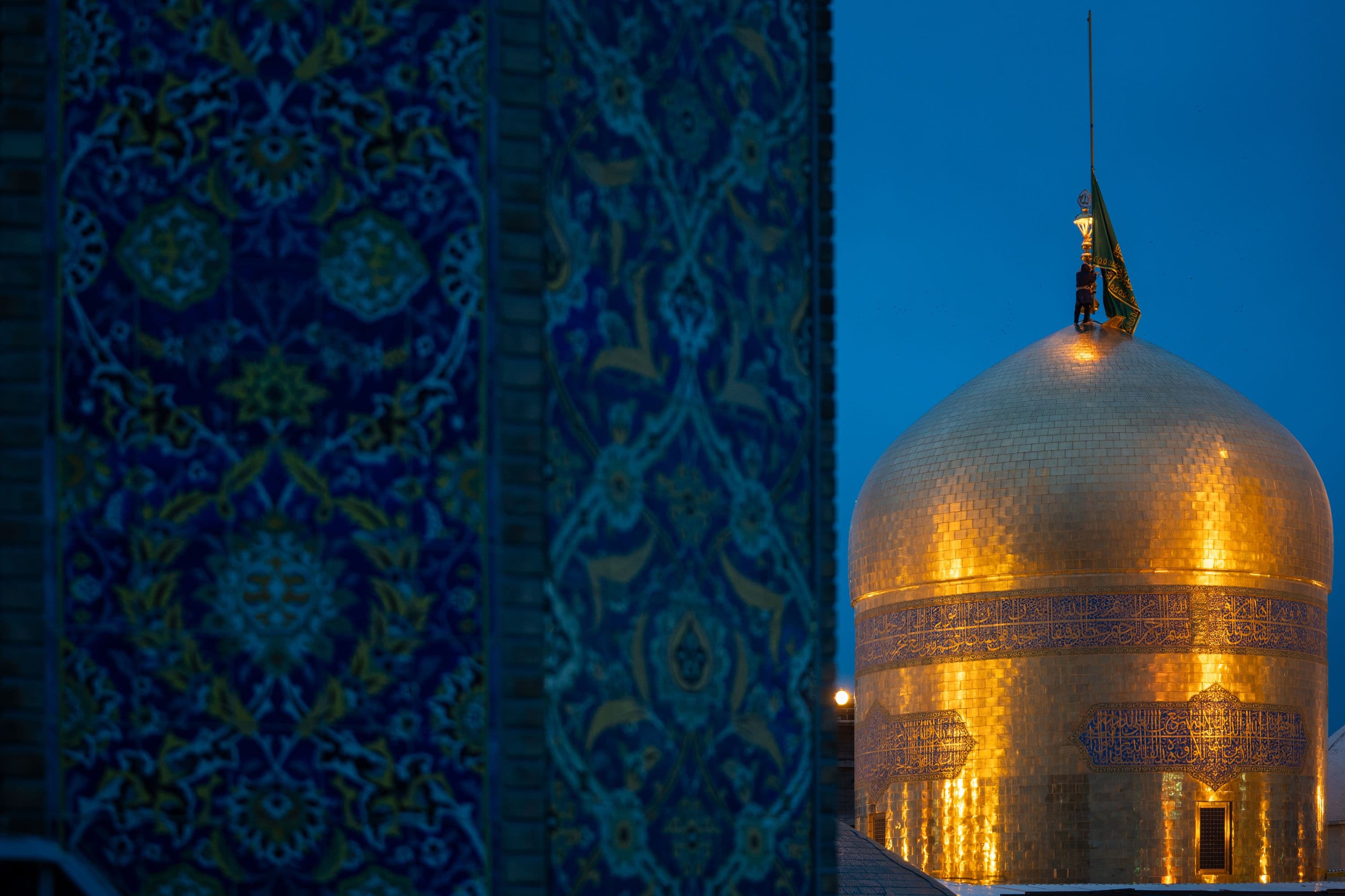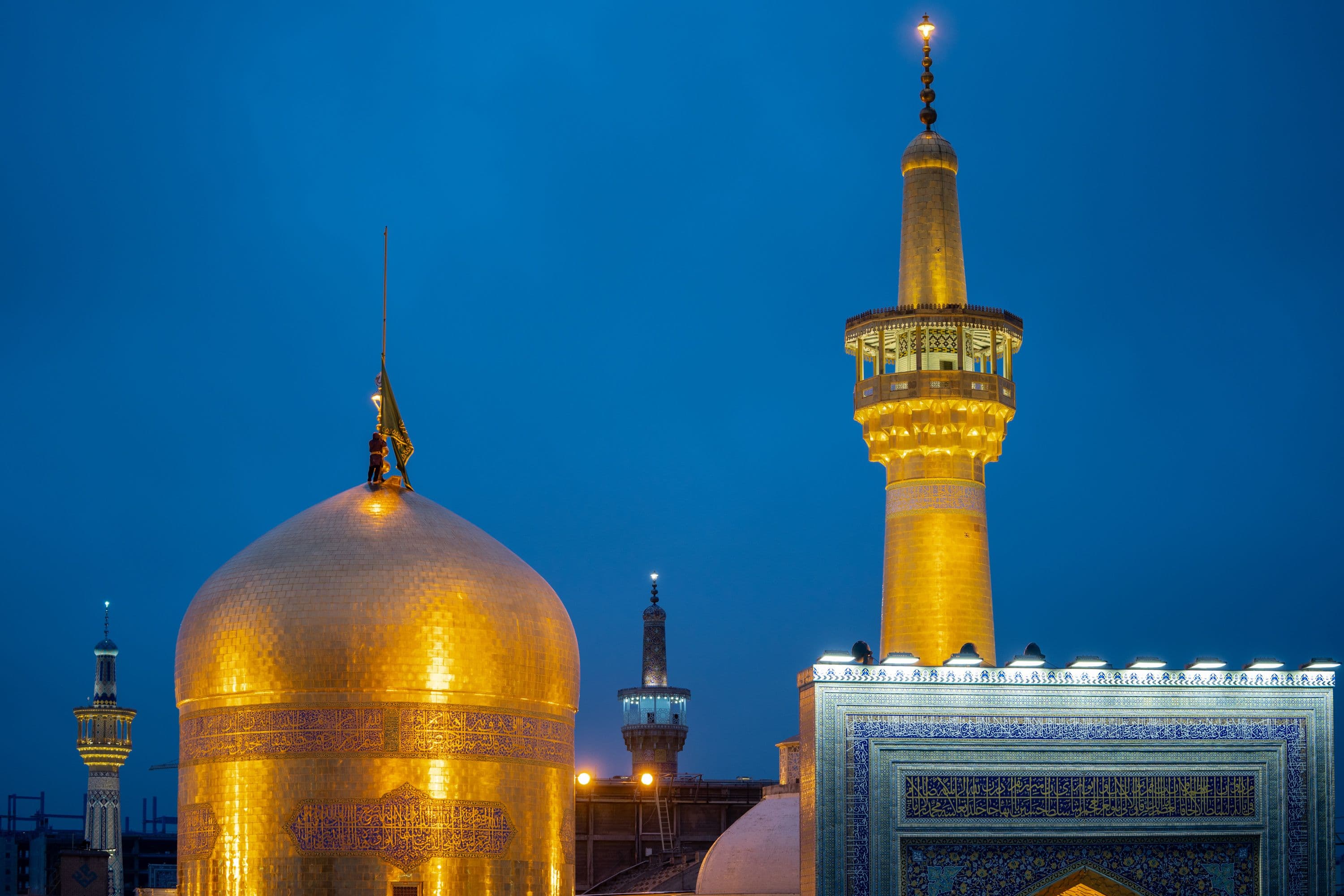 تصاویری از اهتزاز پرچم مشکی و سیاهپوشی حرم مطهر رضوی به مناسبت ایام شهادت حضرت زهرا سلام الله علیها