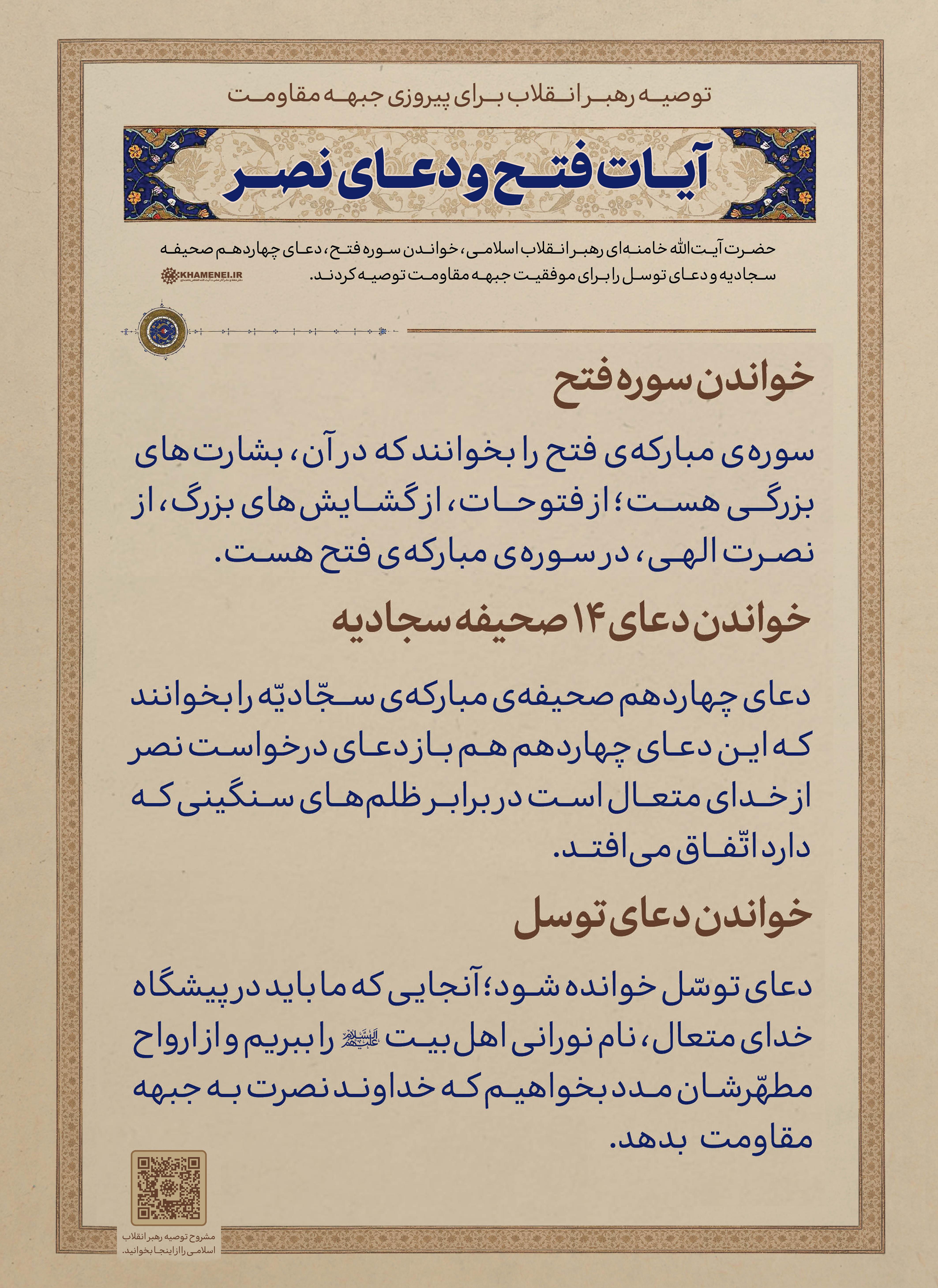 دانلود پوستر توصیه های رهبر انقلاب برای پیروزی جبهه مقاومت