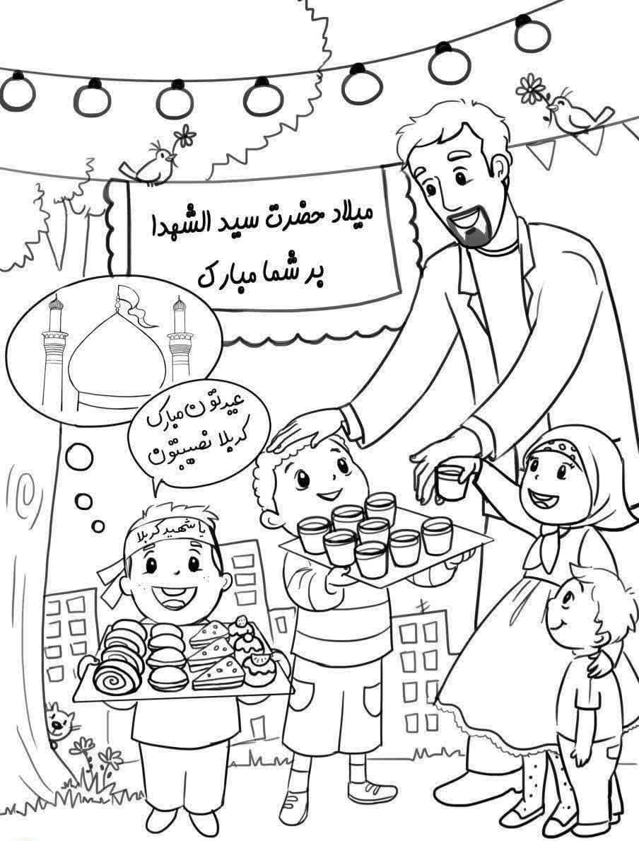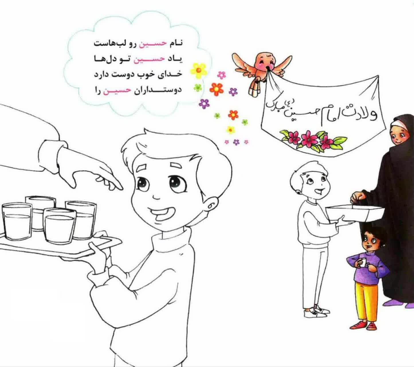 رنگ آمیزی با موضوع ولادت امام حسین علیه السلام