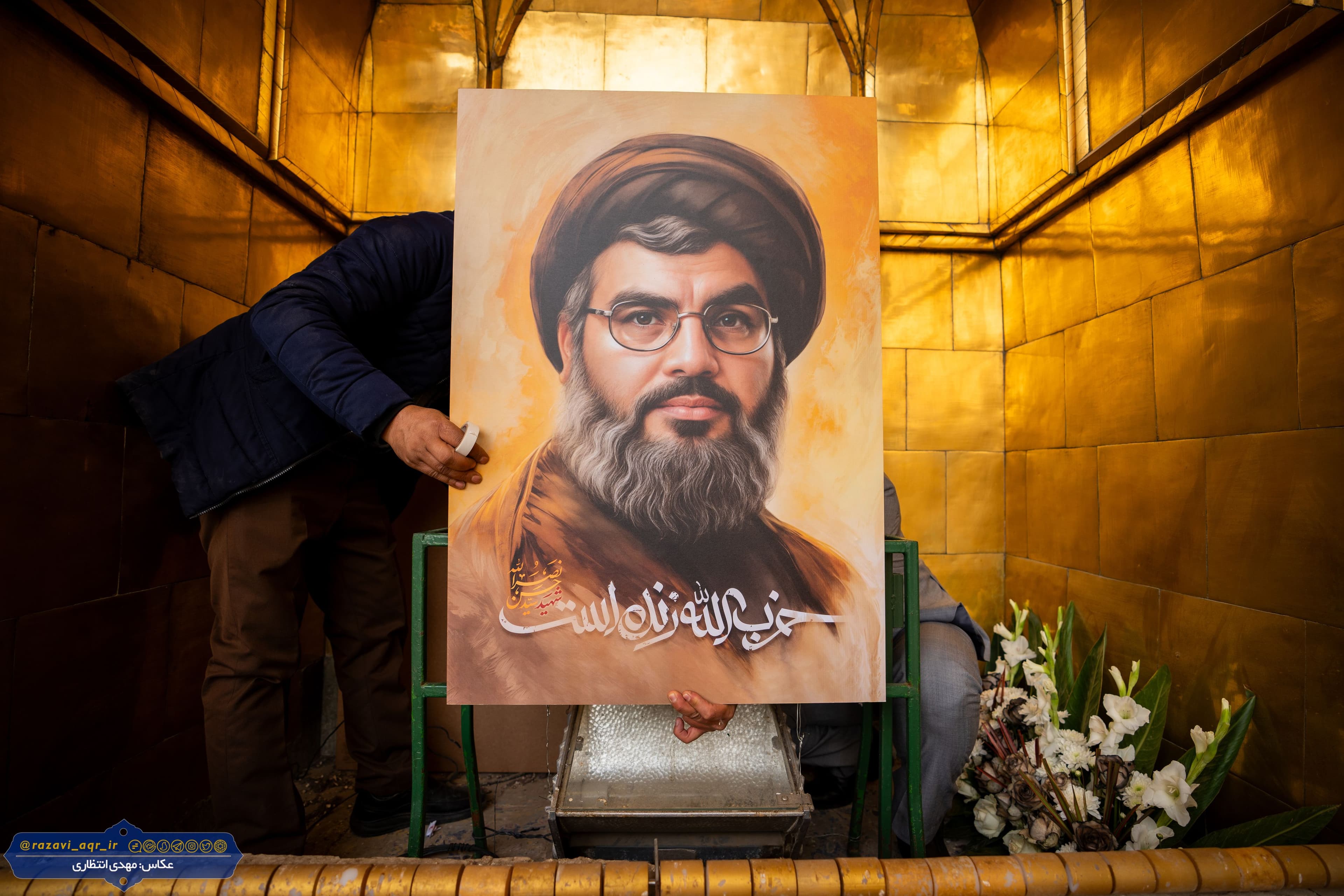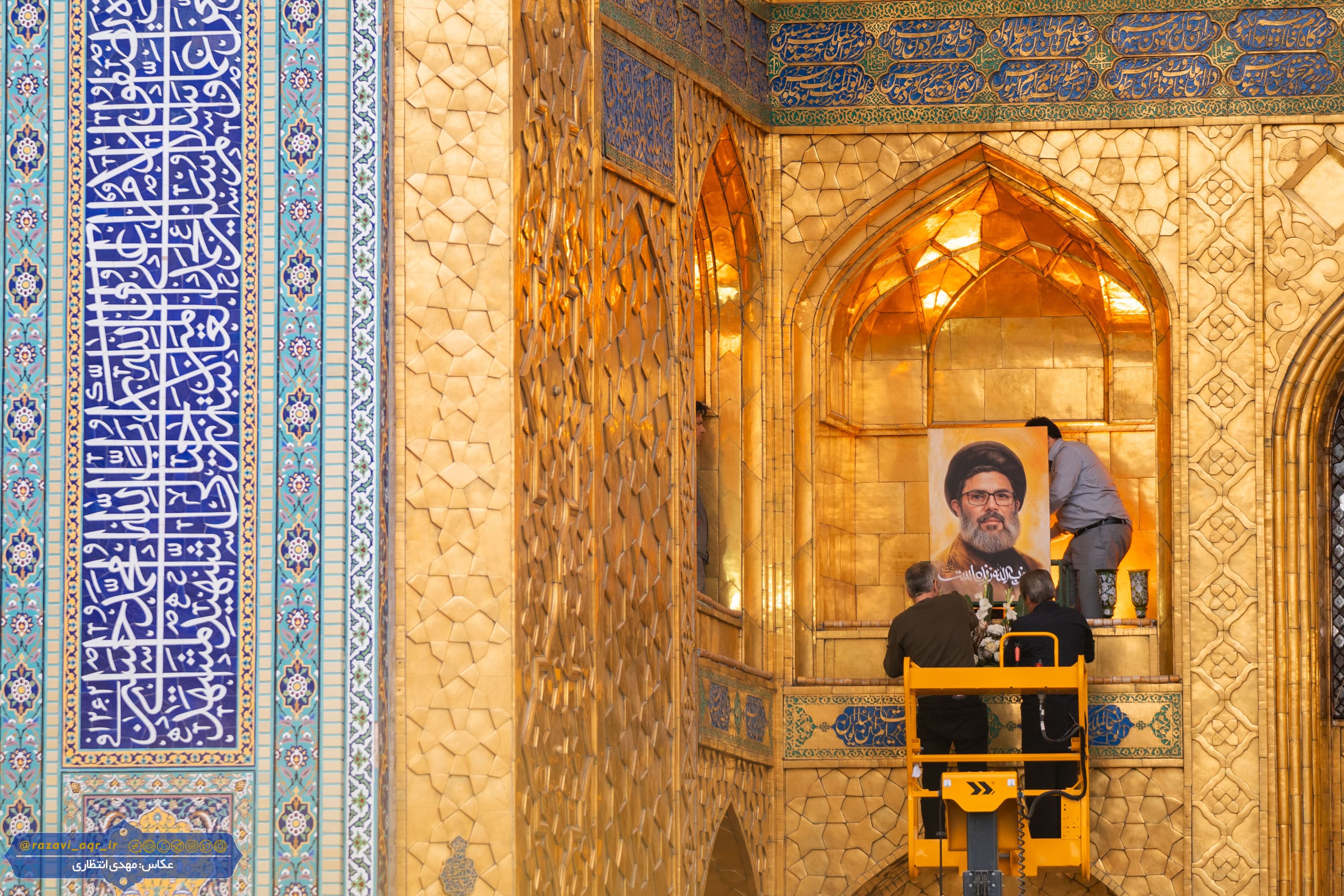 نصب تصاویر رهبران مقاومت در ایوان طلای صحن آزادی