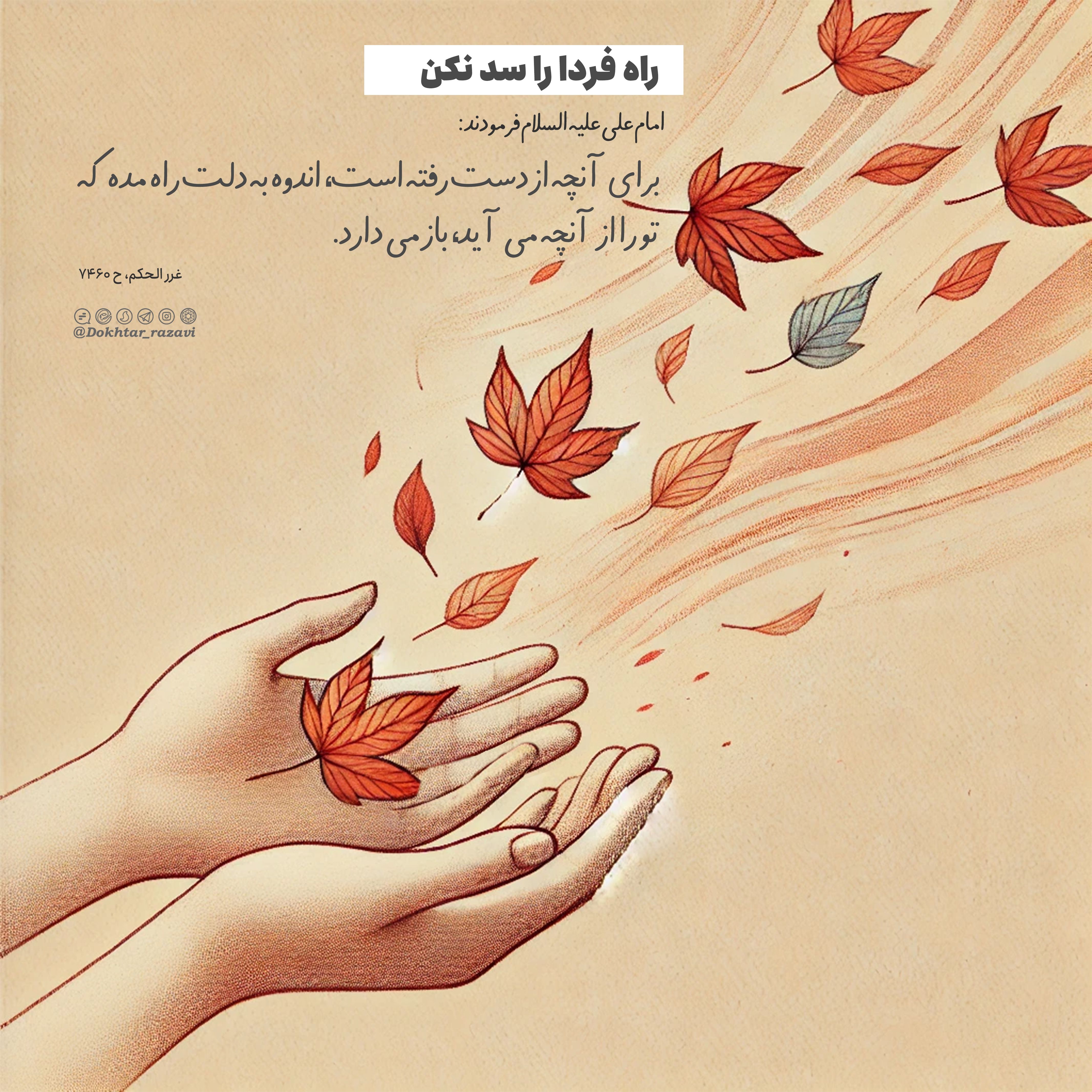 براى آنچه از دست رفته است اندوه به دلت راه مده، كه تو را از آنچه مىآيد باز مىدارد.