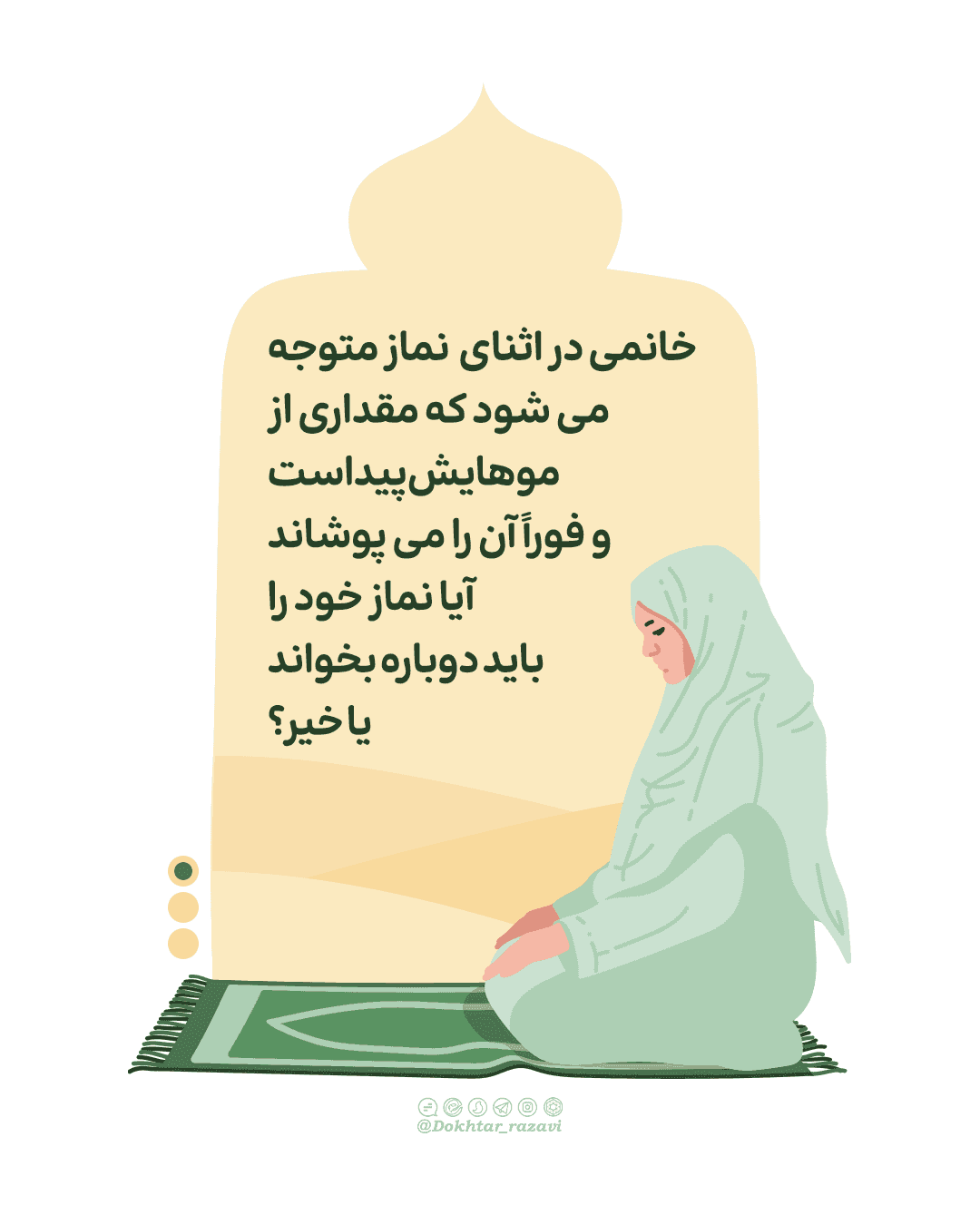 خانمی در اثنای نماز متوجه میشود که مقداری از موهایش پیداست و فوراً آن را میپوشاند،