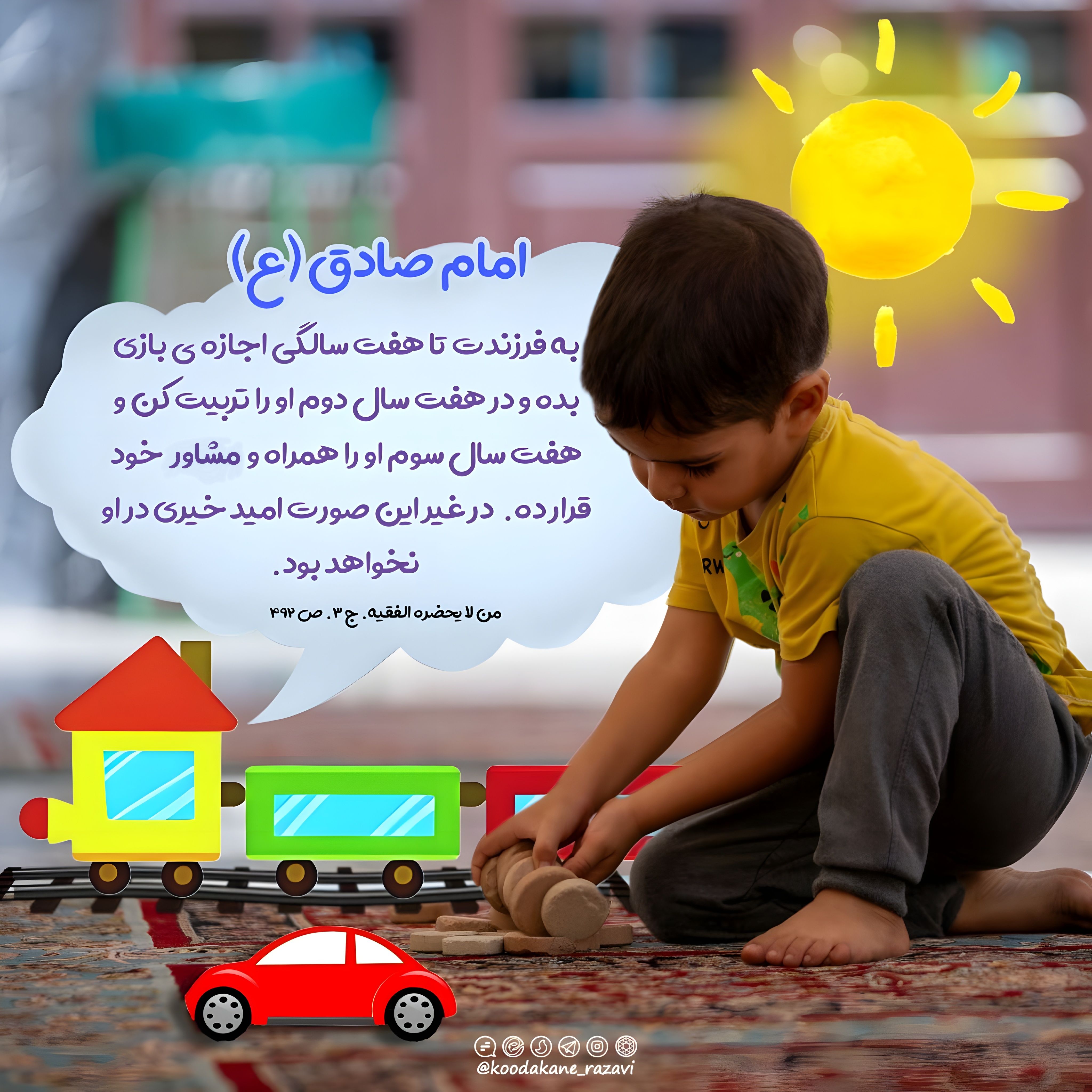 به فرزندت تا هفت سالگی اجازهی بازی بده و در هفت سال دوم او را تربیت کن و هفت سال سوم او را همراه و مشاور خود قرار ده. در غیر این صورت امید خیری در او نخواهد بود.