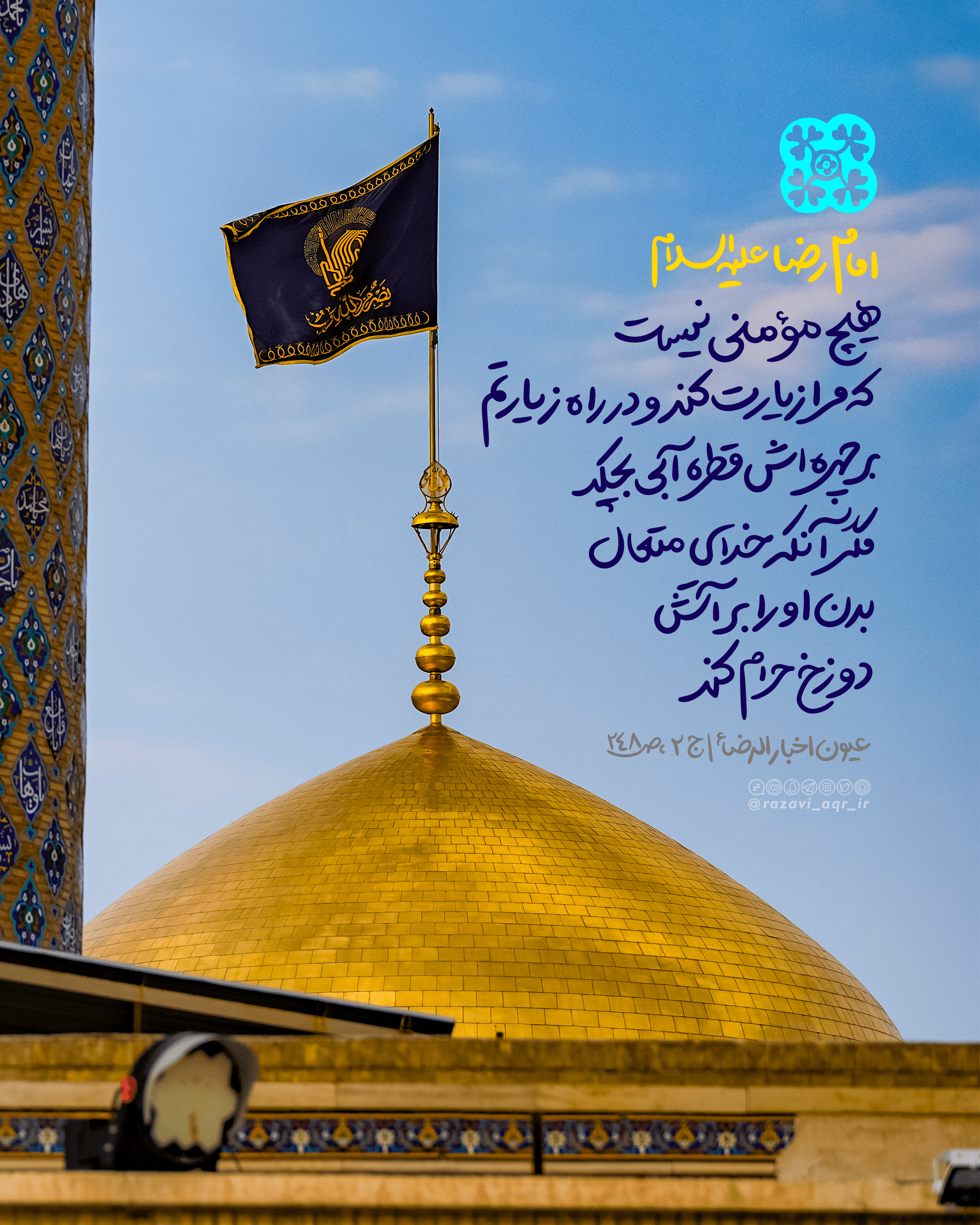 “هيچ مؤمنى نيست كه مرا زيارت كند و در راه زيارتم بر چهرهاش قطره آبى بچكد، مگر آنكه خداى متعال، بدن او را بر آتش دوزخ حرام مىكند.”