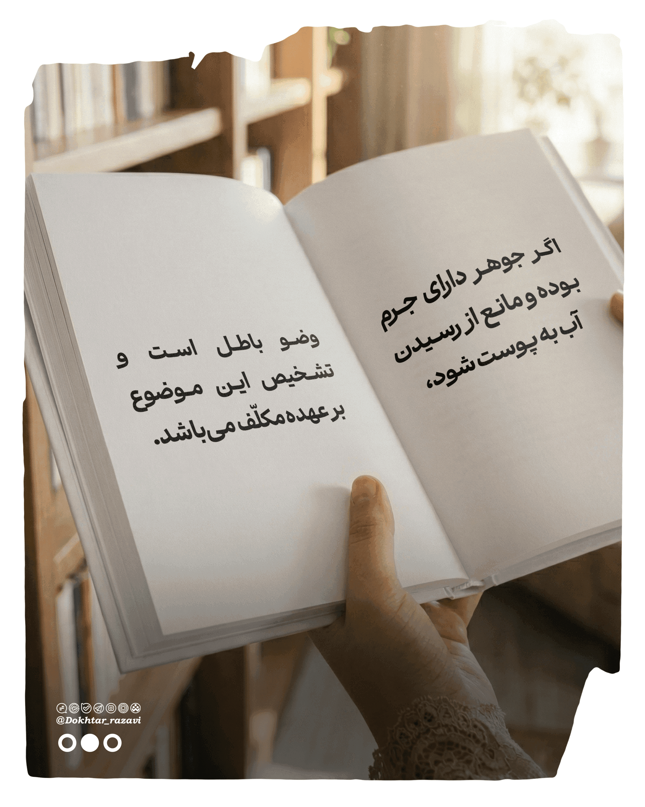 اگر جوهر دارای جرم بوده و مانع از رسیدن آب به پوست شود، وضو باطل است و تشخیص این موضوع بر عهده مکلّف میباشد.