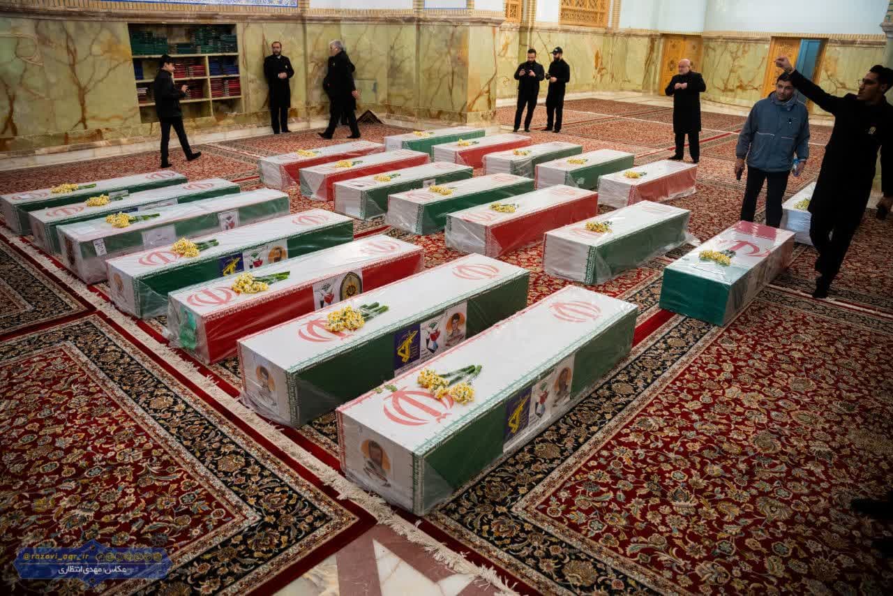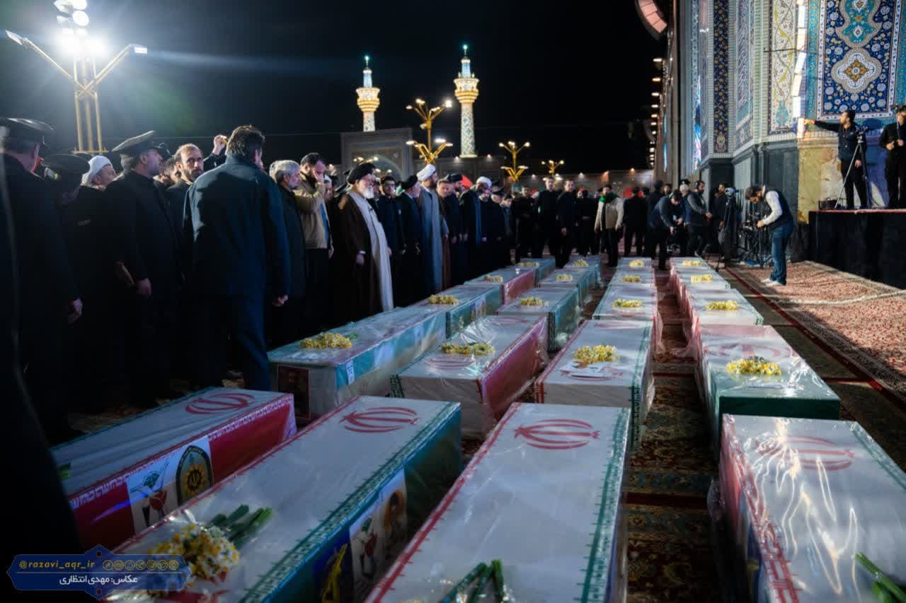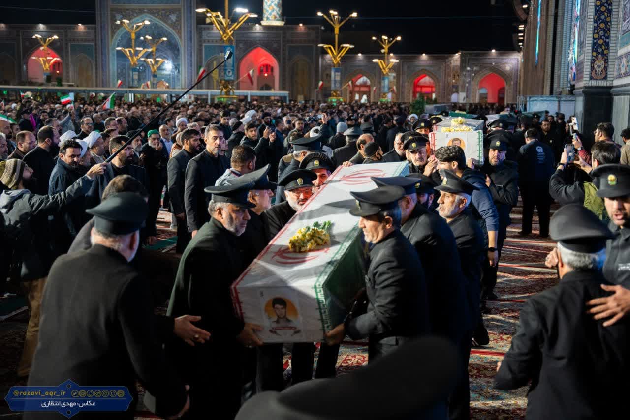اقامه نماز بر پیکر مطهر شهدای جنایات اخیر در جوار امام هشتم علیه السلام