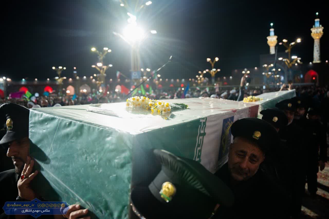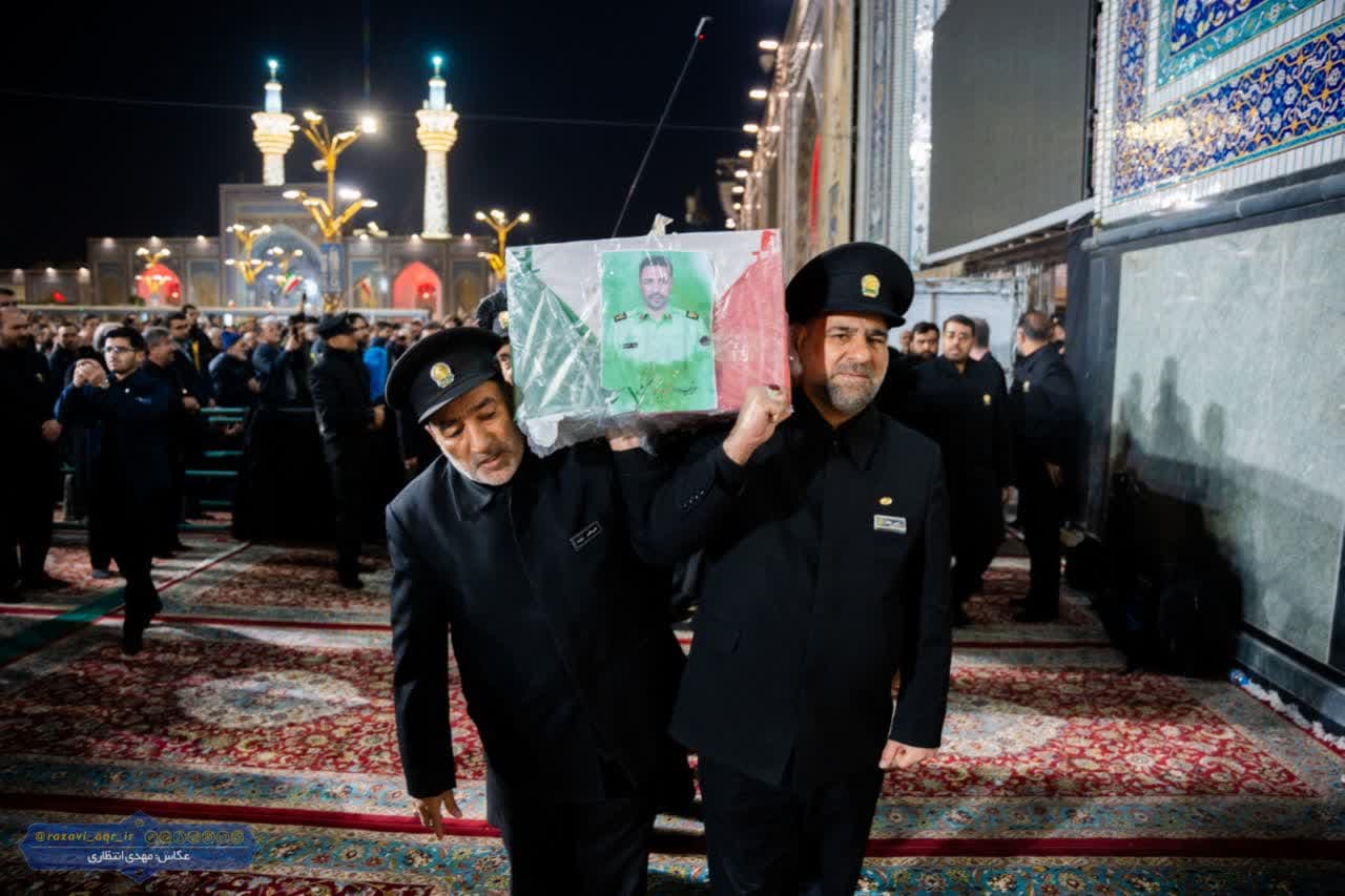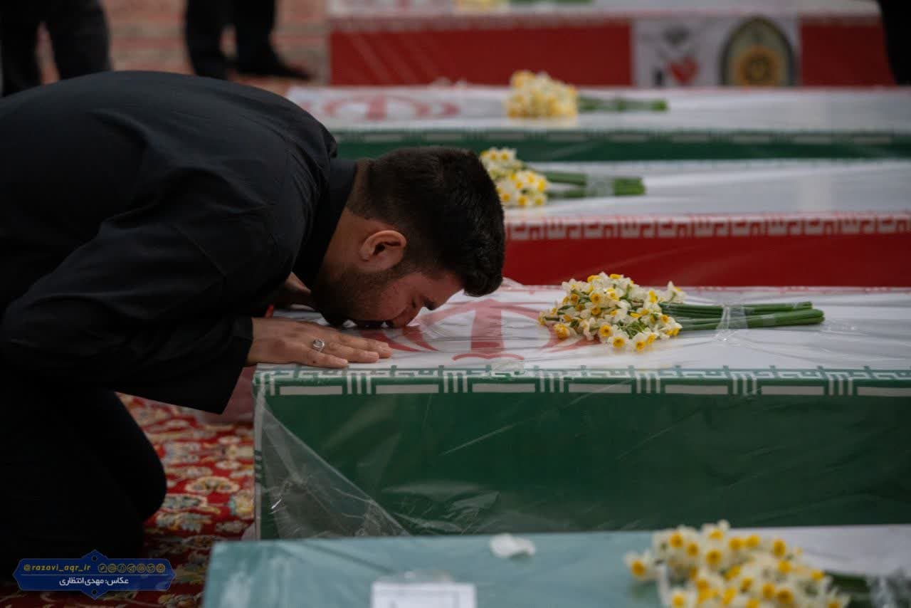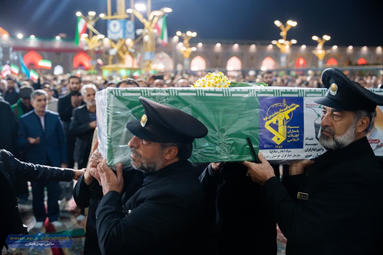 اقامه نماز بر پیکر مطهر شهدای جنایات اخیر در جوار امام هشتم علیه السلام