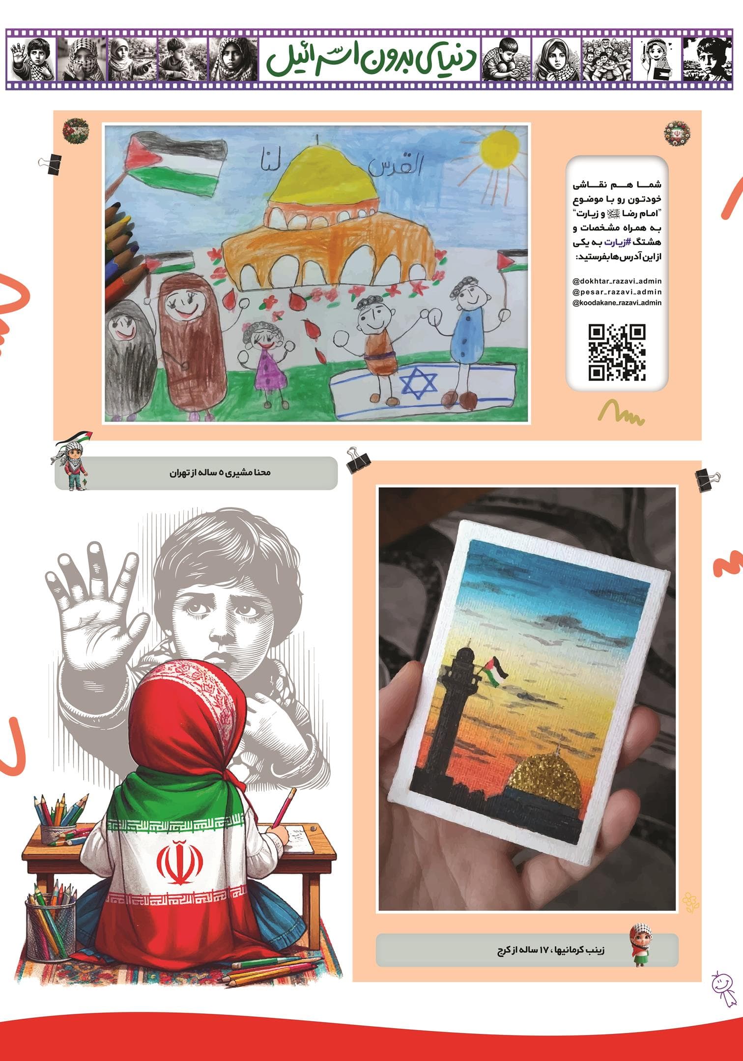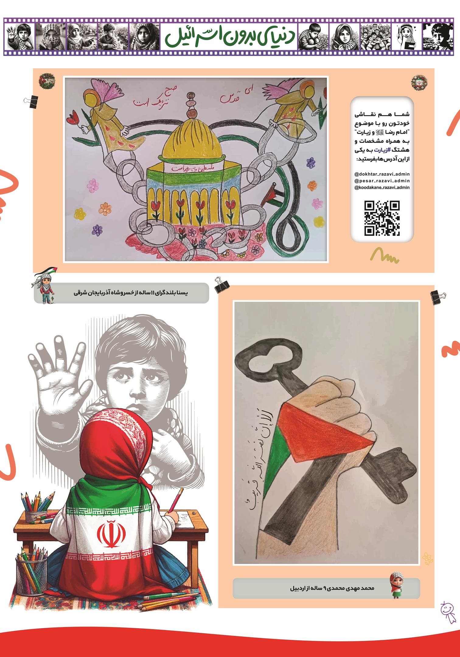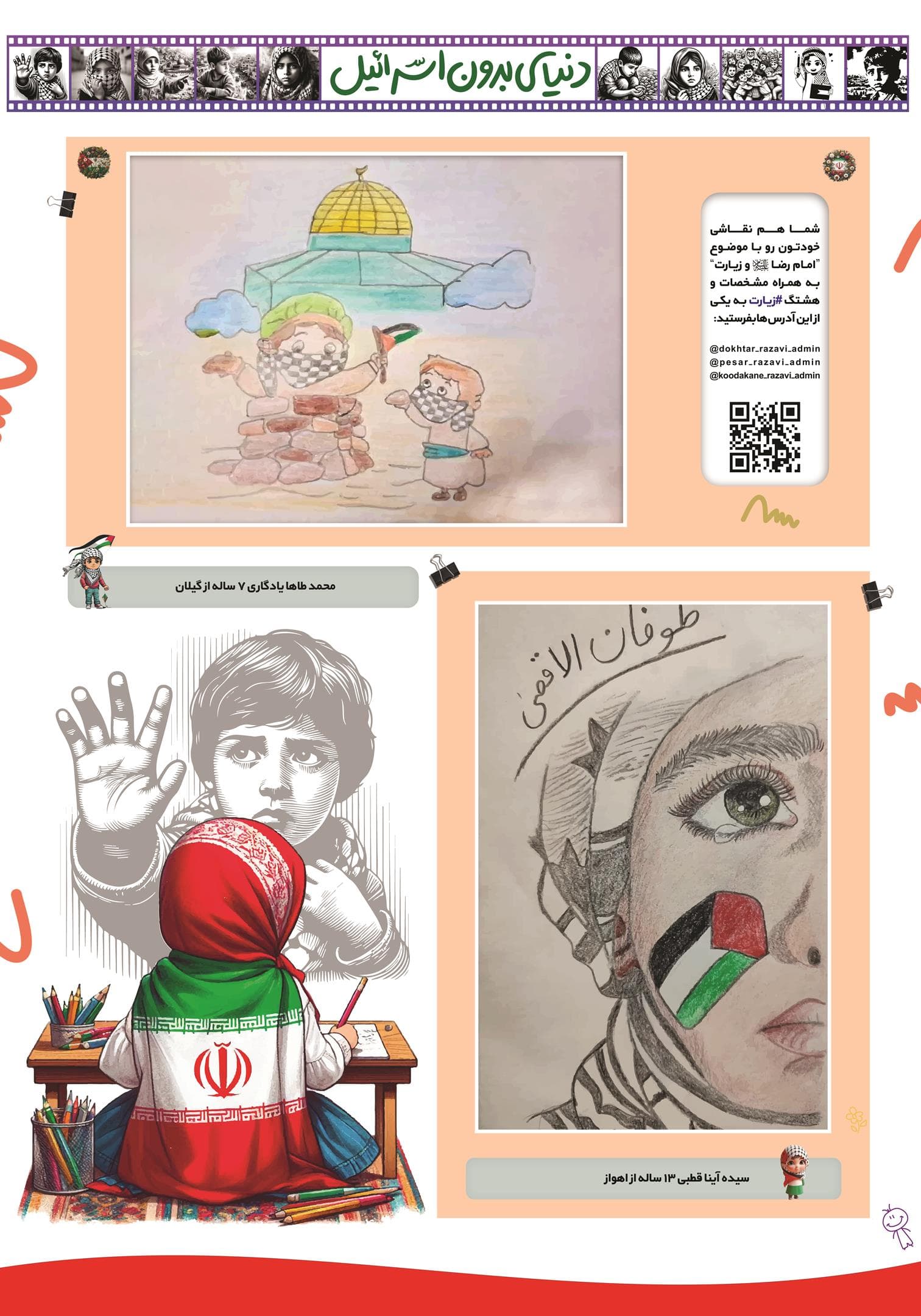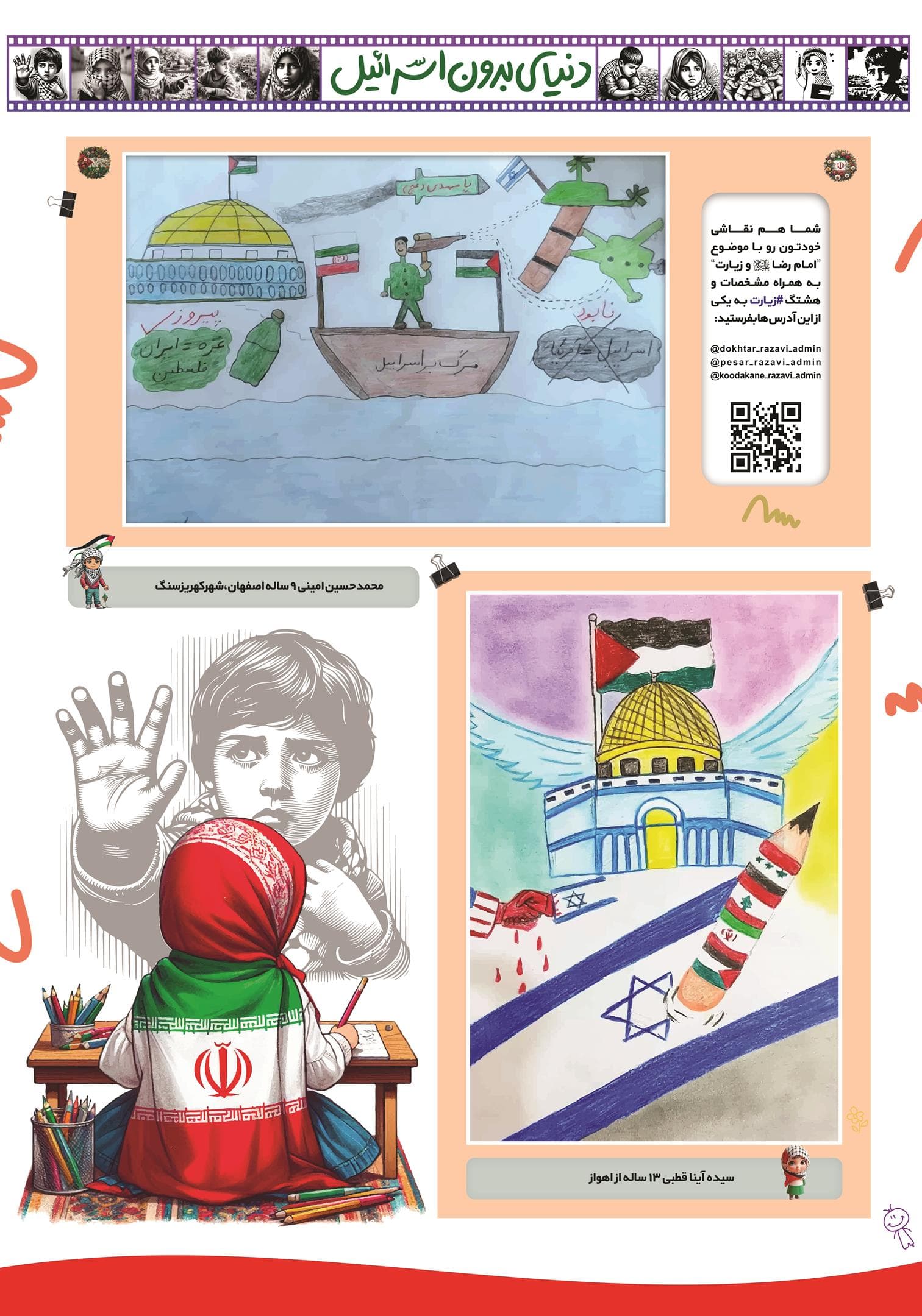 مجموعه عکس از نقاشی کودکان و نوجوانان در فراخوان نقاشی دنیای بدون اسرائیل