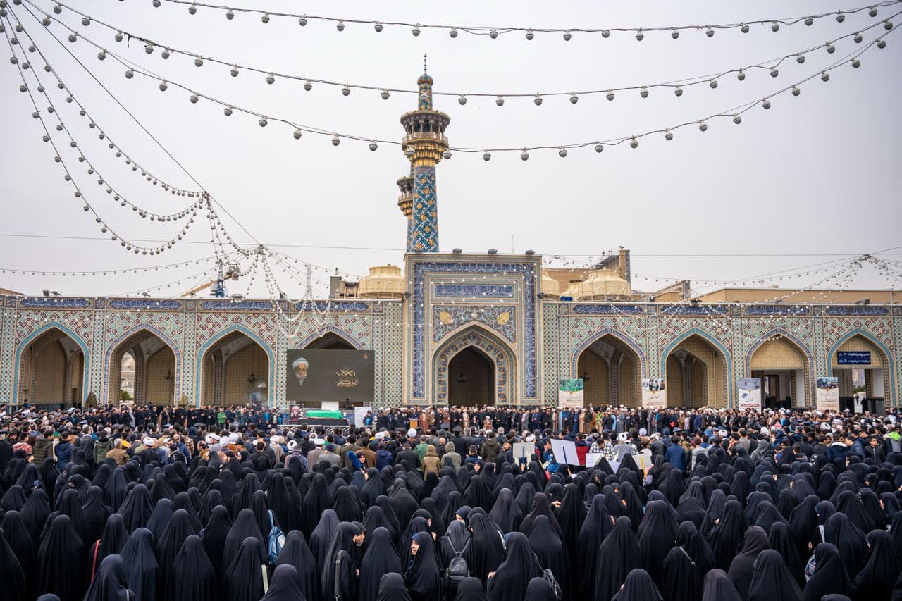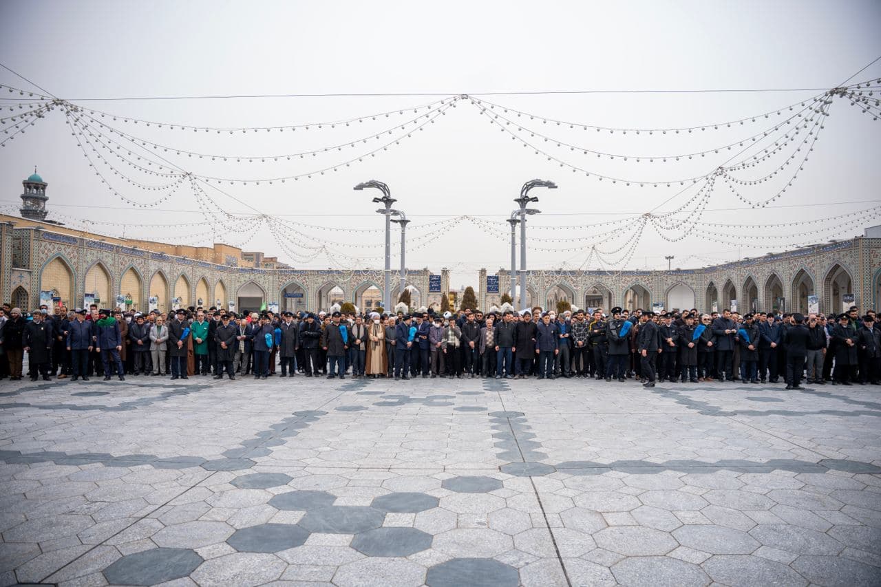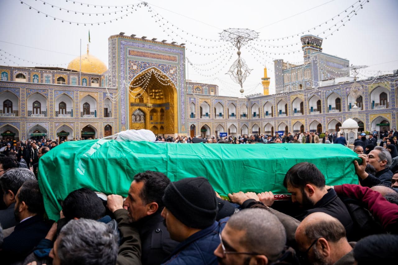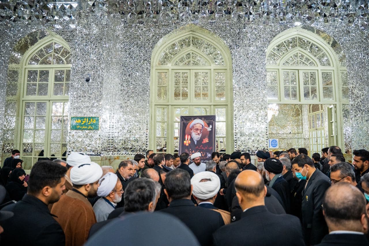 مجموعه عکس از مراسم تشییع مرحوم آیت الله محمد امامی کاشانی در حرم مطهر رضوی - با حضور علما، کارکنان آستان قدس و زائران رضوی
